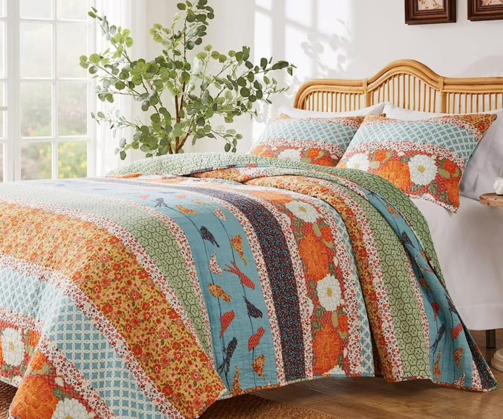 Transform your bedroom into a sun-drenched sanctuary with the coastal charm and bohemian flair of Barefoot Bungalow. Every reversible quilt and plush throw captures the spirit of island living through vibrant tropical prints, intricate jacobean ferns, and hand-pieced artistry. From the breezy blues of the Riviera set to the folk-art warmth of the Topanga collection, these designs offer a versatile escape for those who crave color and comfort. Experience the perfect blend of California style and everyday luxury with oversized bedding crafted by Greenland Home Fashions to brighten your home and your mood.